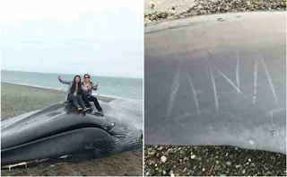 El hecho se presentó dos días después de celebrar el Día Mundial de las Ballenas, el 19 de febrero. Lo usuarios notaron un grafiti en la cola del animal que dice “Ana, te amo”. Cabe aclarar que no es claro si fueron las dos mujeres quienes hicieron la inscripción. Otros también se tomaron selfies https://l.facebook.com